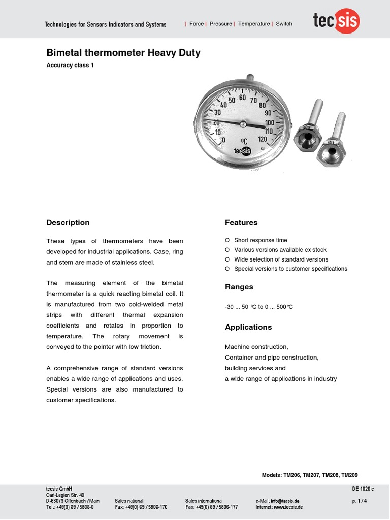 Industrial Thermometers we have modified and optimally adapted our industrial thermometers to the requirements in the field of heating and air conditioning. we manufacture dial type bimetal thermometers, digital thermometers, rtd assemblies, and other instruments that measure, indicate, and transmit. Since their invention, sika thermometers have been the epitome of robustness, reliability and accuracy. Widely specified in industrial and commercial. Industrial Thermometers.